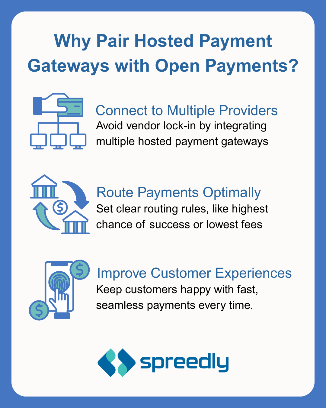 The success of your business can depend greatly on the quality of your payment experience. Every hosted payment gateway solution is different from the next, especially as you expand into new regions and markets. An open payments platform enables a high degree of operational flexibility and can automatically route each payment to the optimal gateway.Â
