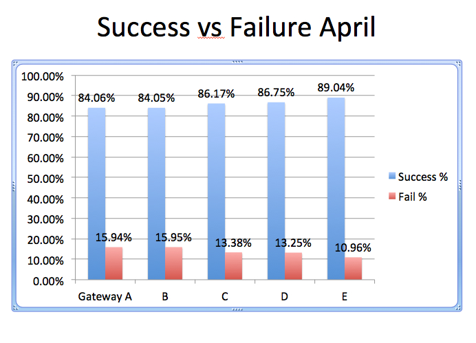 The problem is there is no Feefighters for failure and success rates by payment gateway. The other problem is, even if you realize that the grass is greener on the other side you often have to do a LOT of work to get there. If failed transactions are a concern then we might be able to help.