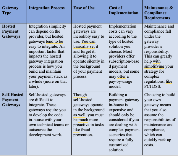 Payment gateways can be broadly categorized as either hosted or self-hosted.