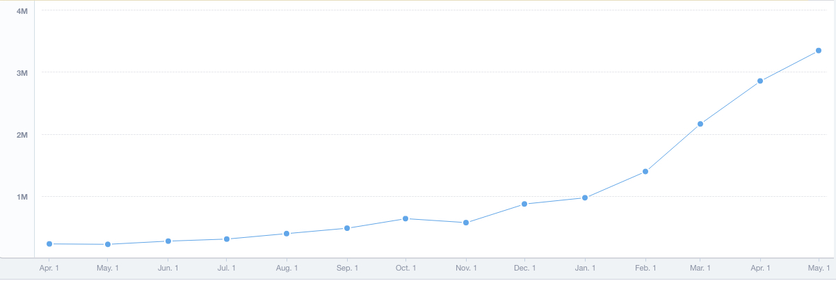 Below is an illustration of all transactions on our platform in Mexican Pesos (MXN) (some transactions are local, in-country merchants and some are non-Mexican merchants processing in pesos).